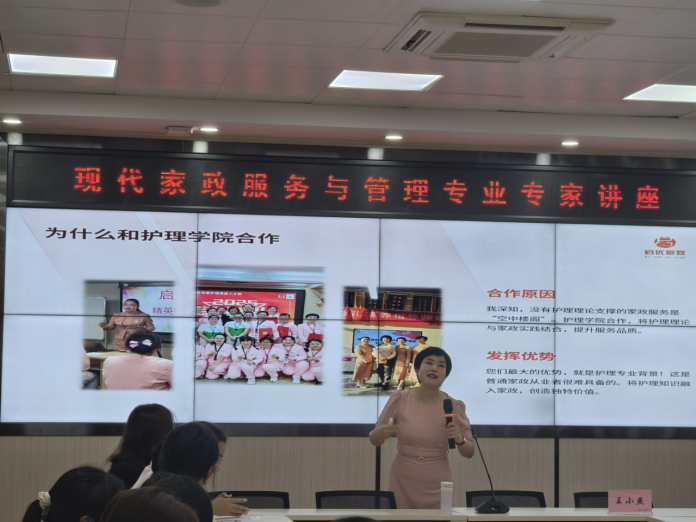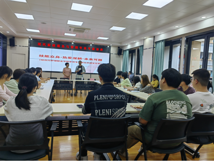 9月26日下午,护理系“匠心筑梦、‘职’引未来”系列讲座《技能立身·热爱深耕》拉开序幕,特邀请四川博泰诺邦健康管理有限公司总经理王小燕为现代家政服务与管理专业的学生带来精彩讲座。