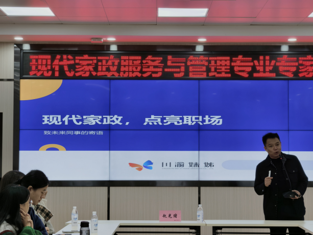赵光绪老师从我和我的企业、颠覆你认知的家政、家政职场导航、大学生打造T型竞争力、学长寄语五个方面进行讲解,阐述了家政行业职业细分化、服务品牌化、管理连锁化、宣传网络化的未来发展趋势,引导同学们系统梳理行业脉络,展现专业潜力与前景。