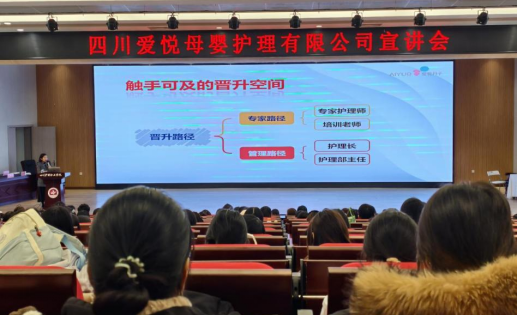为深化产教融合、拓宽育人路径,帮助学生精准把握行业发展趋势与就业需求。11月7日,我院特邀四川爱悦母婴护理有限公司人力资源负责人何娟,在德阳校区演艺厅开展“爱悦母婴”方向班暨企业宣讲讲座。智慧护理学院主任邓小利、副主任淳玲出席会议,2024级助产专业、婴幼儿托育管理与服务专业以及母婴护理方向班学生共300余人参加了此次讲座。