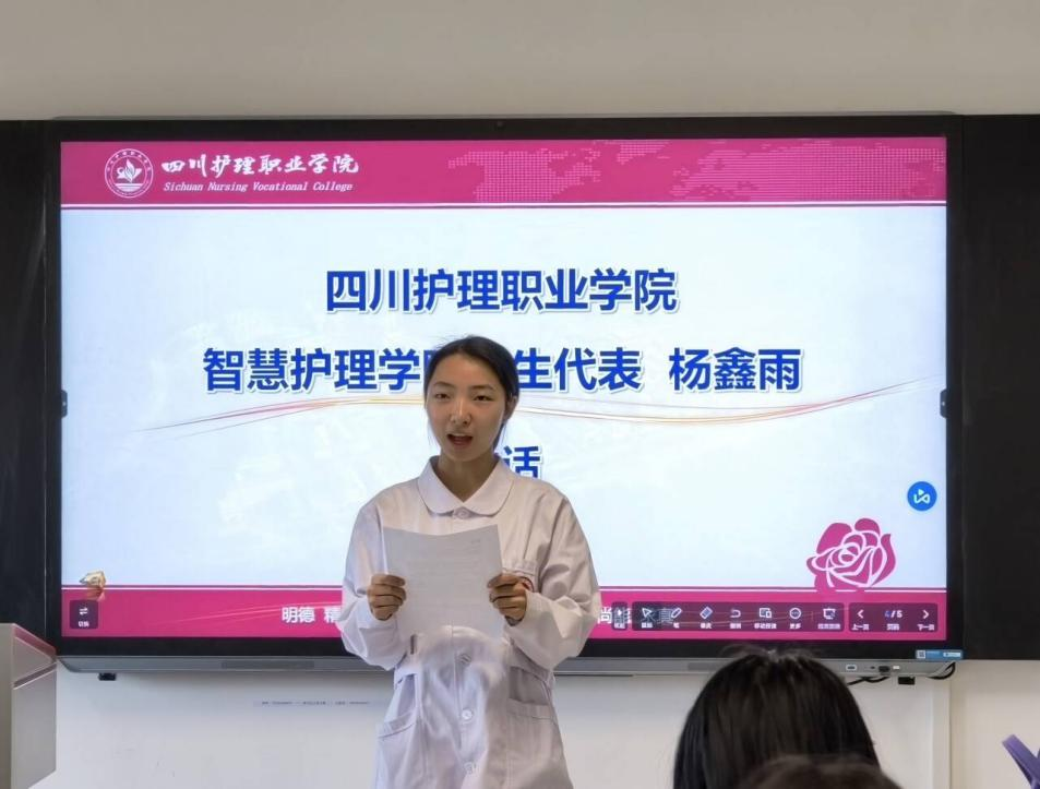 学生代表杨鑫雨随后发言,她代表全体订单班学员对学校和禧月荟提供的机会表示感谢,并承诺将珍惜机遇,牢记医者使命,刻苦钻研专业知识、锤炼实操技能,提升综合素养,不辜负双方培养,以专业守护母婴健康。